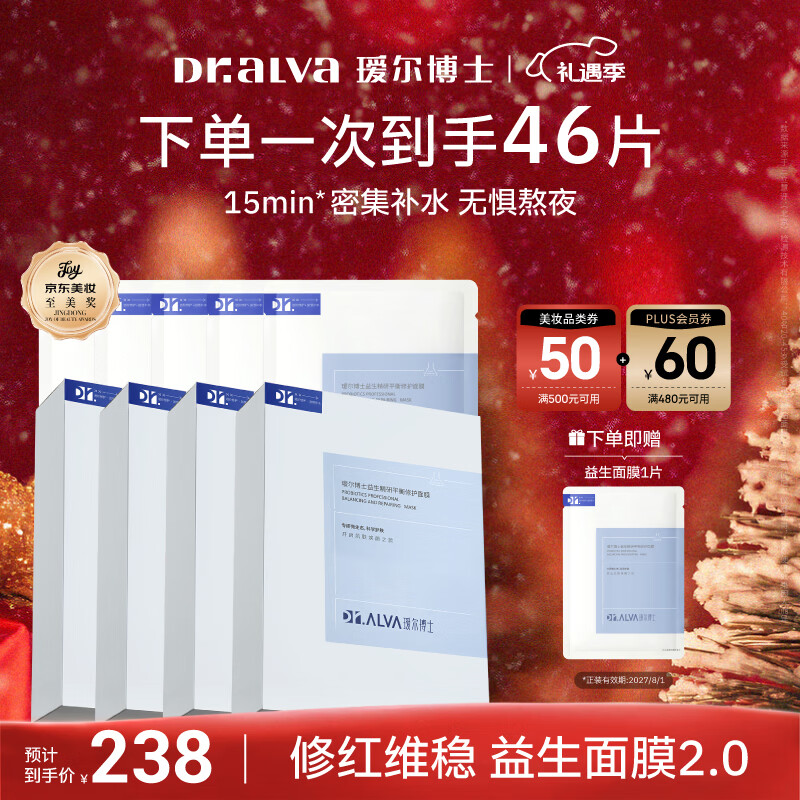 瑷尔博士益生精研平衡修护面膜4盒+5片保湿舒缓熬夜男女士护肤品圣诞礼物
