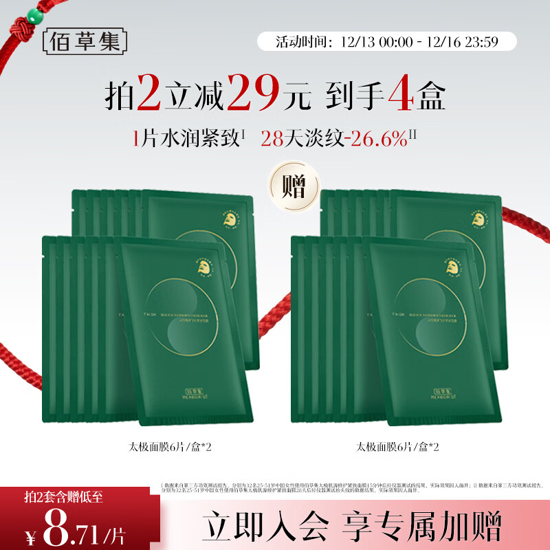 佰草集太极肌源啵啵小绿膜修护紧致面膜25ml×6片保湿补水男女护肤品