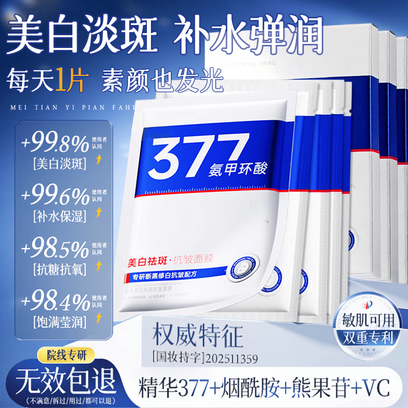 仙蒂奈儿377面膜美白淡斑提亮肤色男女士补水保湿抗皱紧致抗衰老礼物 【拍2发3】377氨甲环酸美白祛斑抗皱面膜1盒