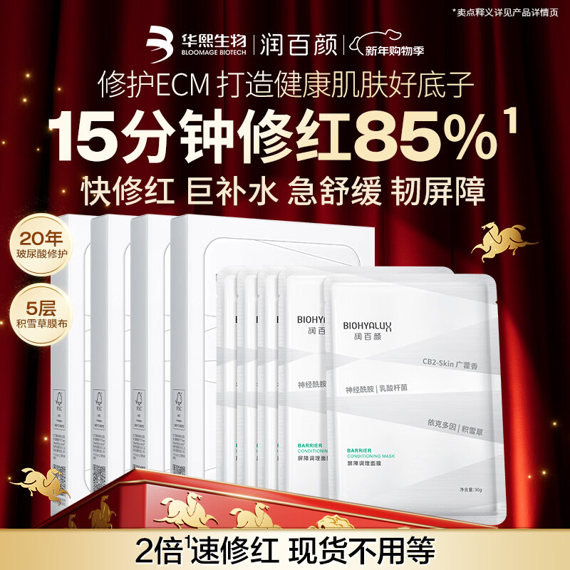 润百颜华熙生物屏障调理白纱布2.0面膜20片修护保湿舒缓护肤品