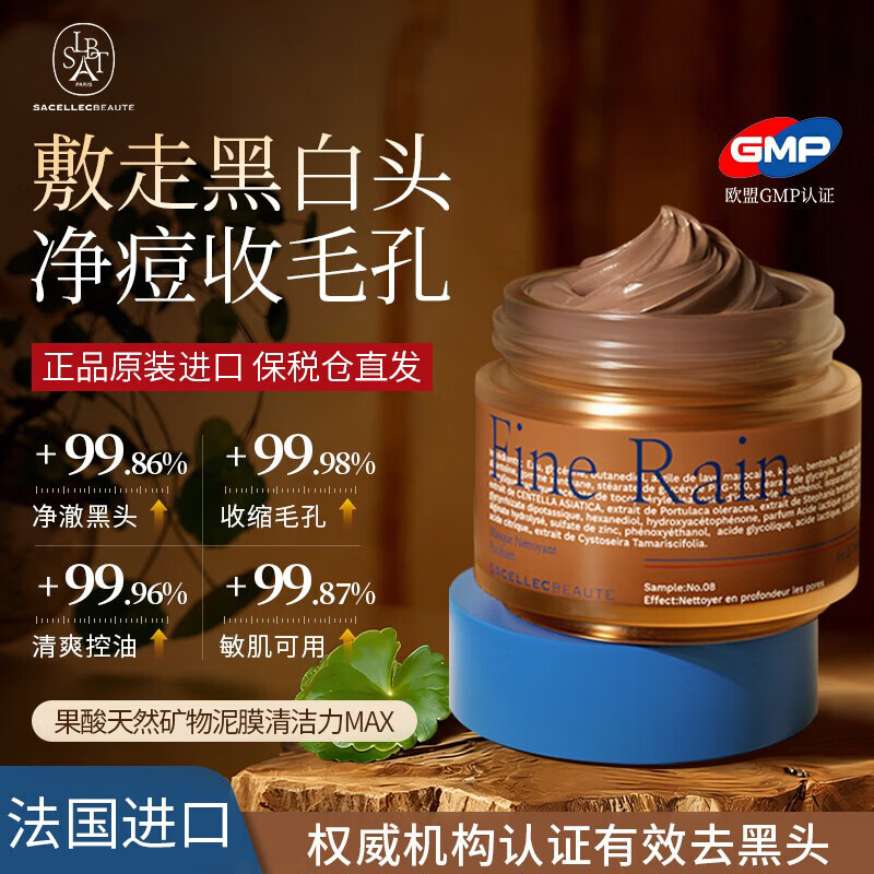 SACELLEC BEAUTE进口清洁泥膜深层清洁去黑头收缩毛孔男士专用补水保湿面膜110ml