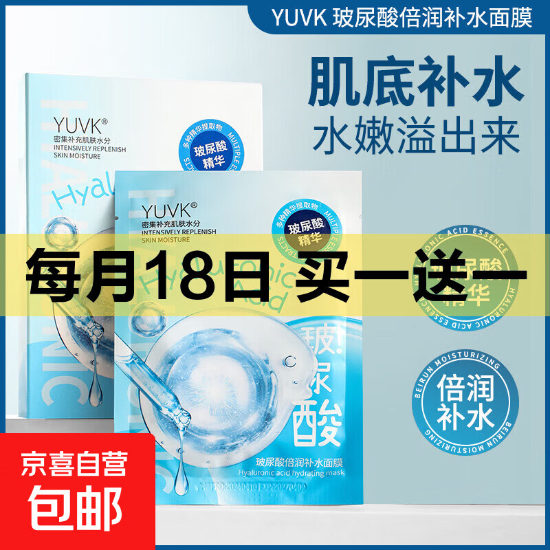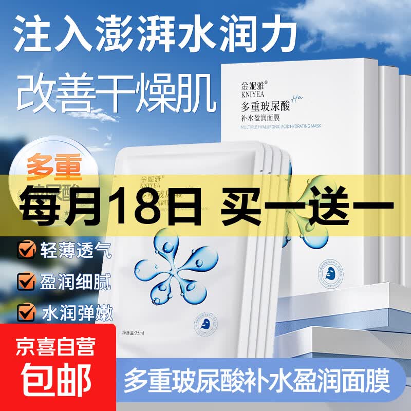 多重玻尿酸补水面膜晒后修护滋养修护肌肤补水保湿面膜男女士通用 多重玻尿酸补水修护面膜 4片 1盒