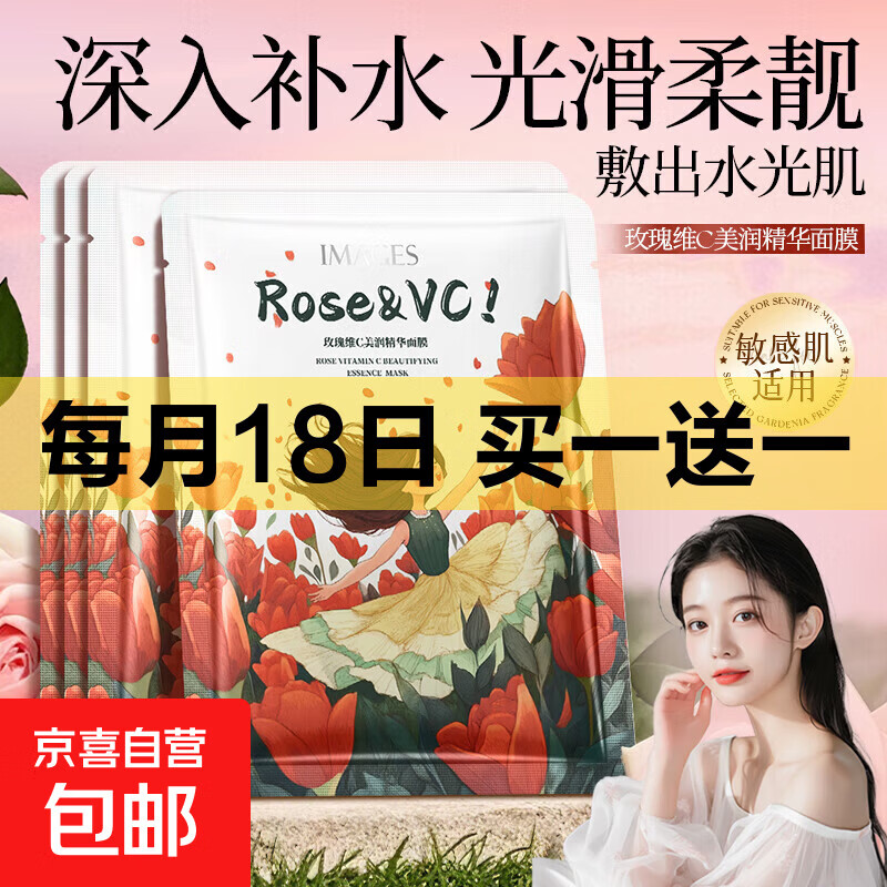 玫瑰维C精华面膜舒缓肌肤紧致抗皱补水保湿面膜贴面部护肤品男女 【抗皱紧致】玫瑰维C面膜1片