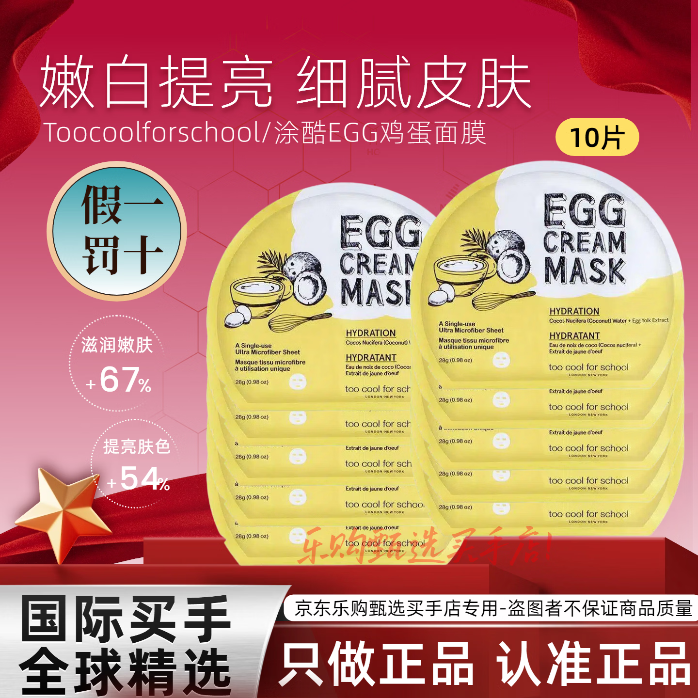 too cool for school涂酷鸡蛋面膜保湿补水收缩毛孔紧致提亮egg韩国 滋养补水-黄色10片-新日期