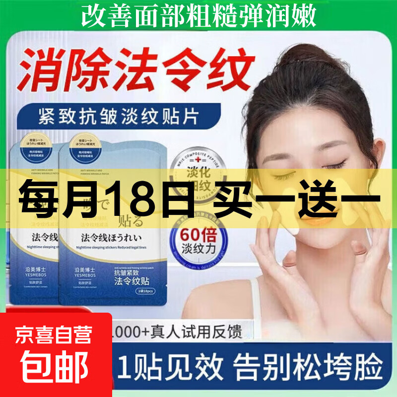 抗皱紧致法令纹贴深层补水保湿淡化细纹抬头纹去黄提亮肤色面膜 18贴*1袋【补水保湿】
