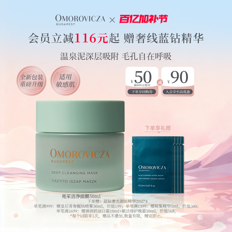 【官方正品】Omorovicza亮采洁净面膜50ml涂抹去黑头清洁泥膜