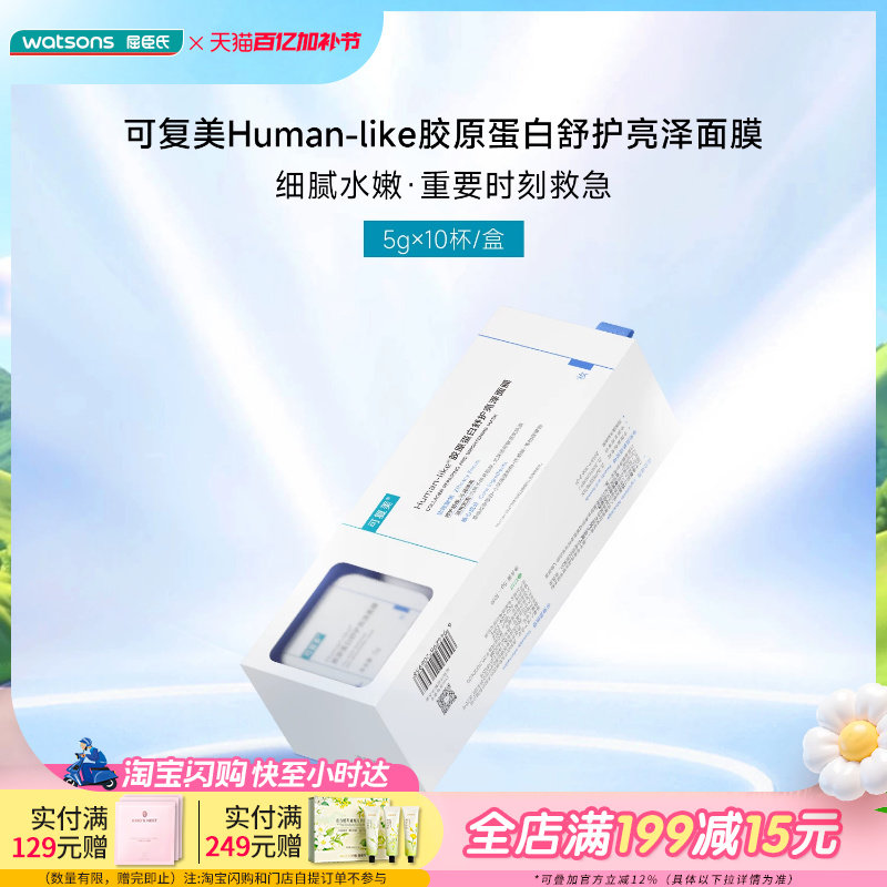 屈臣氏可复美Human-like胶原蛋白舒护亮泽面膜5克*10杯保湿