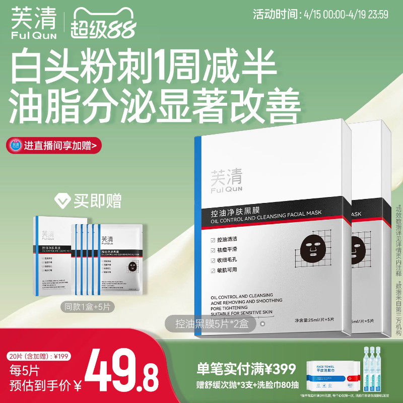 芙清控油黑膜改善闭口粉刺清洁祛痘温和保湿面膜敏感肌
