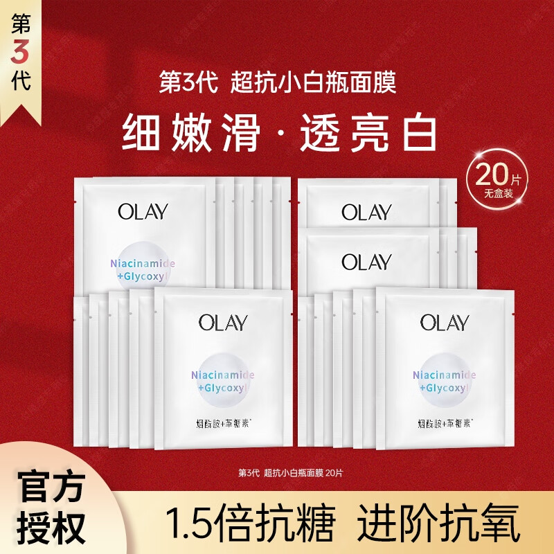 玉兰油(OLAY)超抗小白瓶水感透白面膜祛斑美白提亮紧致老婆送妈妈母亲节礼物 【超享装】3.0超抗面膜20片