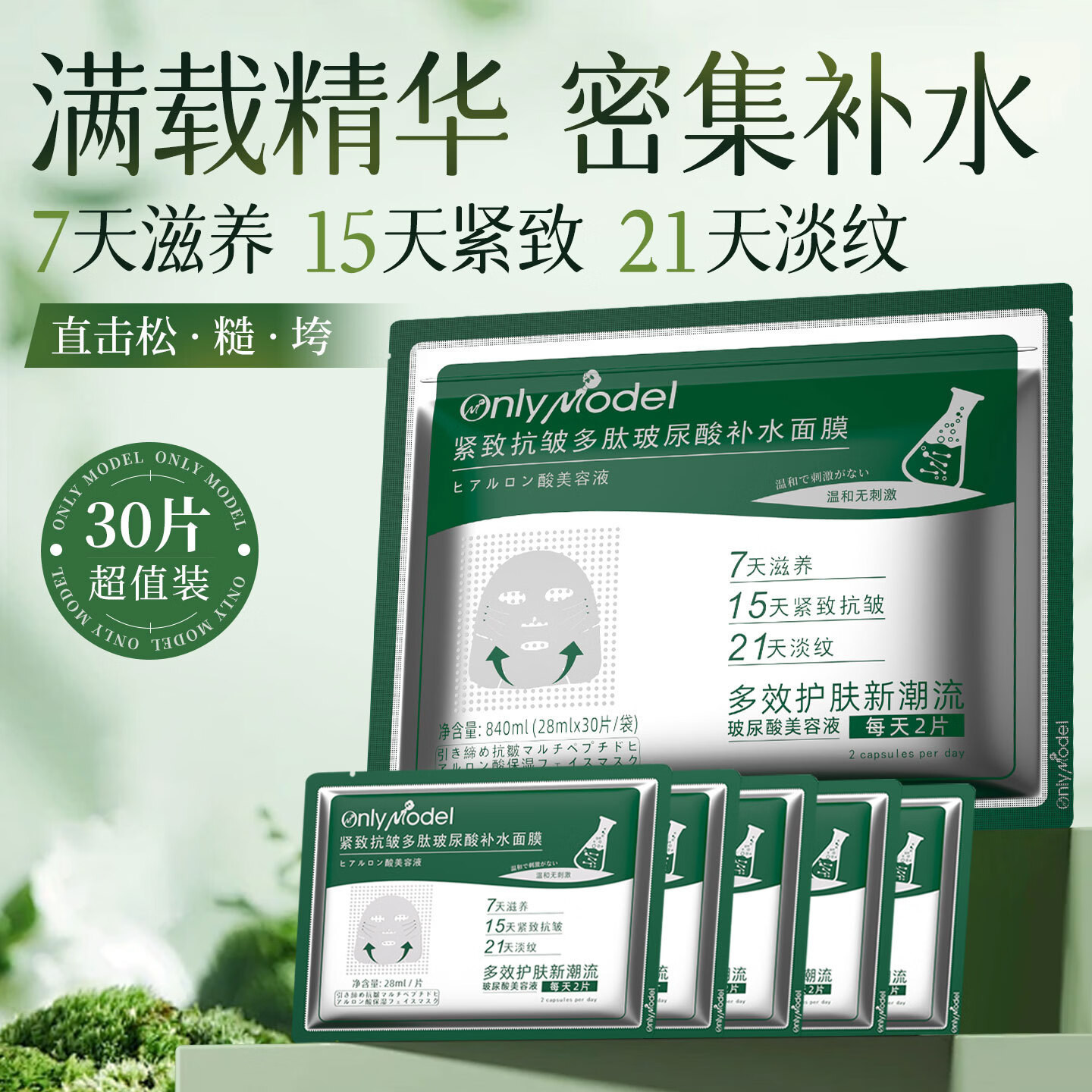 OnlyModel紧致抗皱多肽玻尿酸补水滋养保湿润肤淡纹男女可用面膜官方正品 玻尿酸补水面膜(1袋30片)