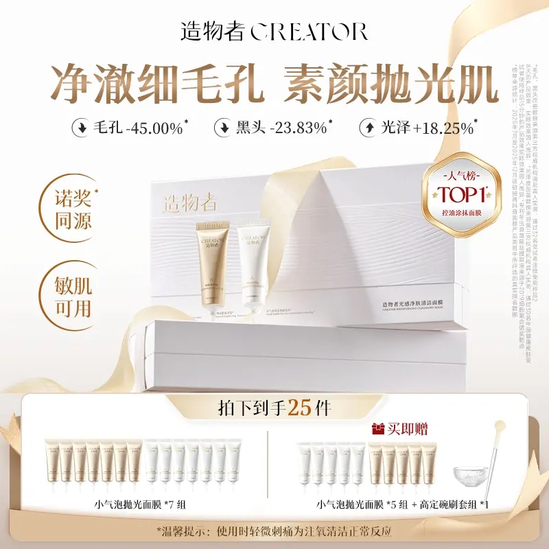 造物者光感净肤造物者温泉酸水光面膜清洁亮保湿收缩毛孔控油小气泡抛光 【造物者温泉酸水光面膜12组】+碗刷套组