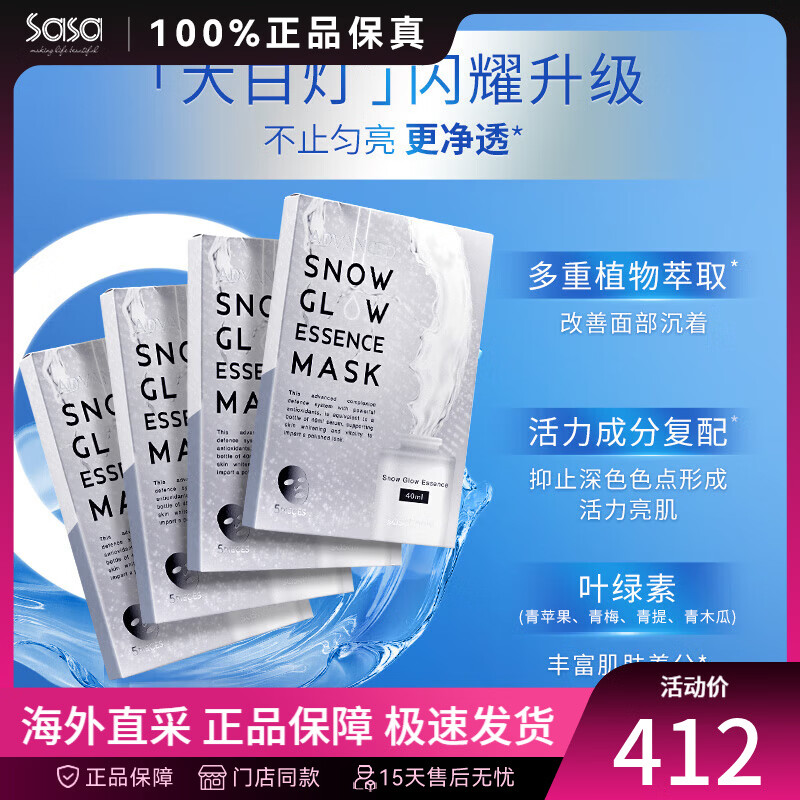 sasatinnie 莎莎天妮TG聚光面膜 大蓝灯补水保湿巨水膜 修护舒缓提亮烟酰胺 大白灯面膜 5片 *4(4盒装)