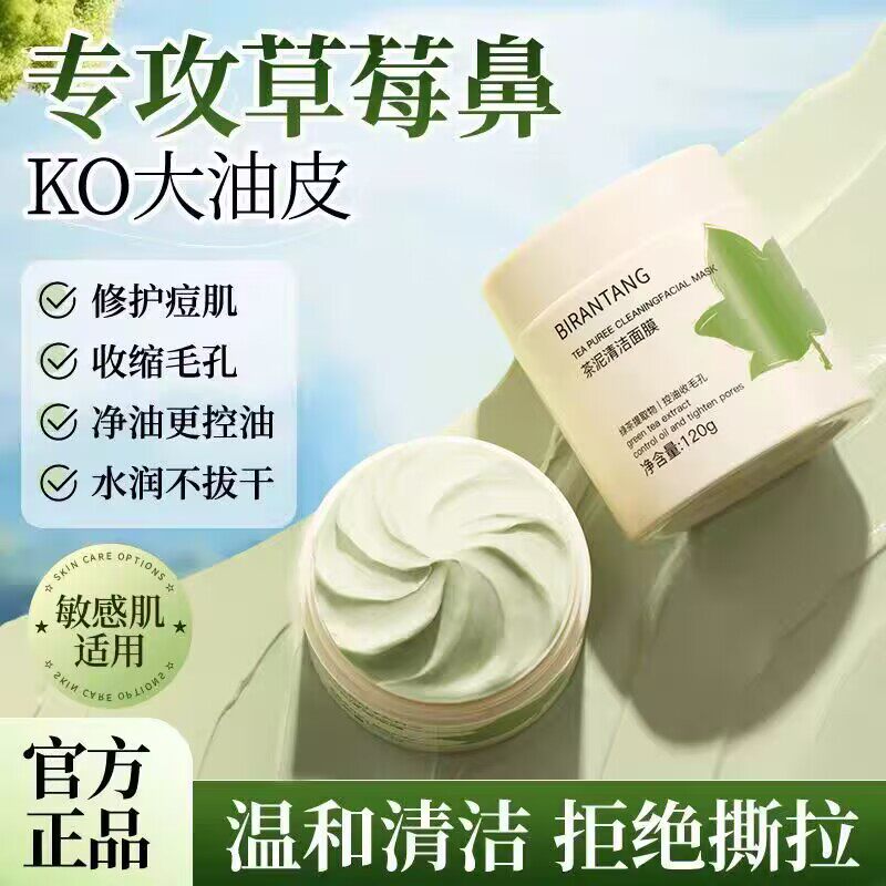 碧然堂茶泥清洁面膜控油深层清洁黑头粉刺收缩毛孔清爽涂抹式面膜