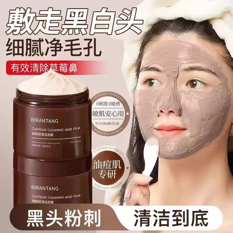 碧然堂咖啡因清洁泥膜温和深层清洁黑头粉刺闭口细腻毛孔涂抹面膜
