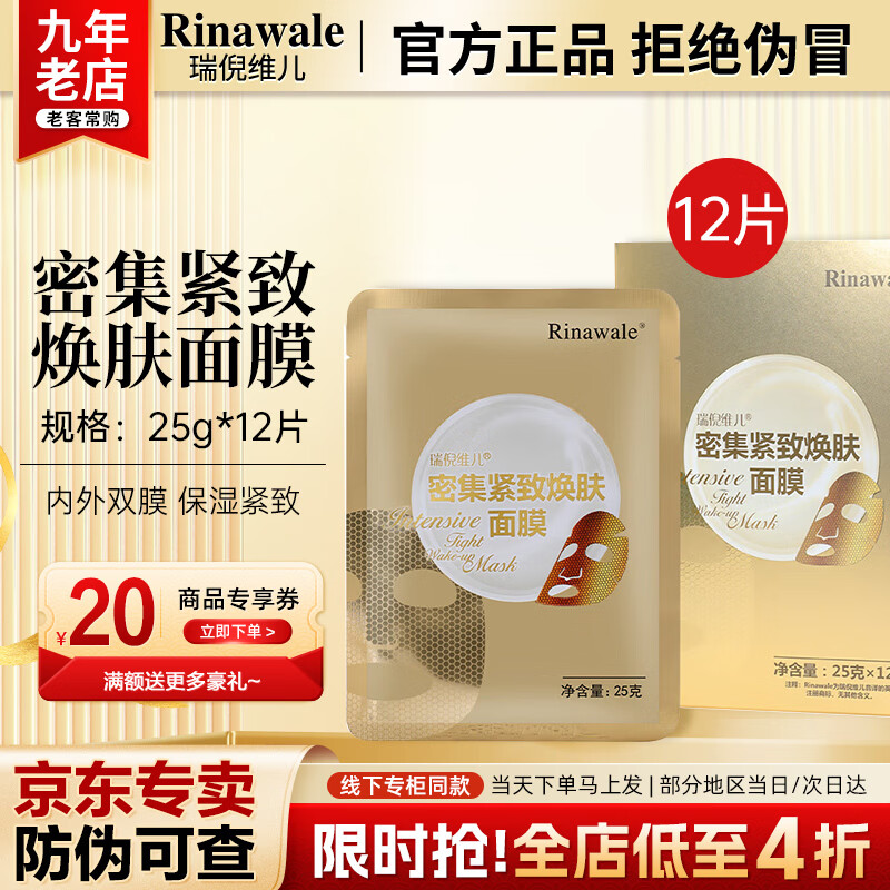 瑞倪维儿(Rinawale)防护净透密集紧致焕肤面膜护肤品 内外双膜保湿舒缓官方正品旗舰 密集紧致焕肤面膜25g*12片