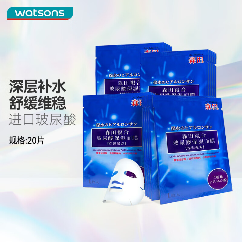 屈臣氏屈臣氏森田玻尿酸复合/复合玻尿酸保湿面膜 20片