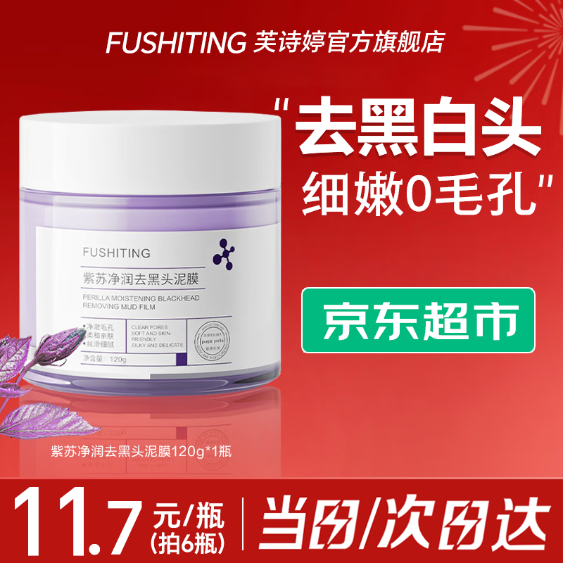 芙诗婷紫苏泥膜深层清洁祛痘控油去黑头闭口粉刺收缩毛孔男女士涂抹面膜 紫苏去黑头泥膜120g*1 120g/瓶