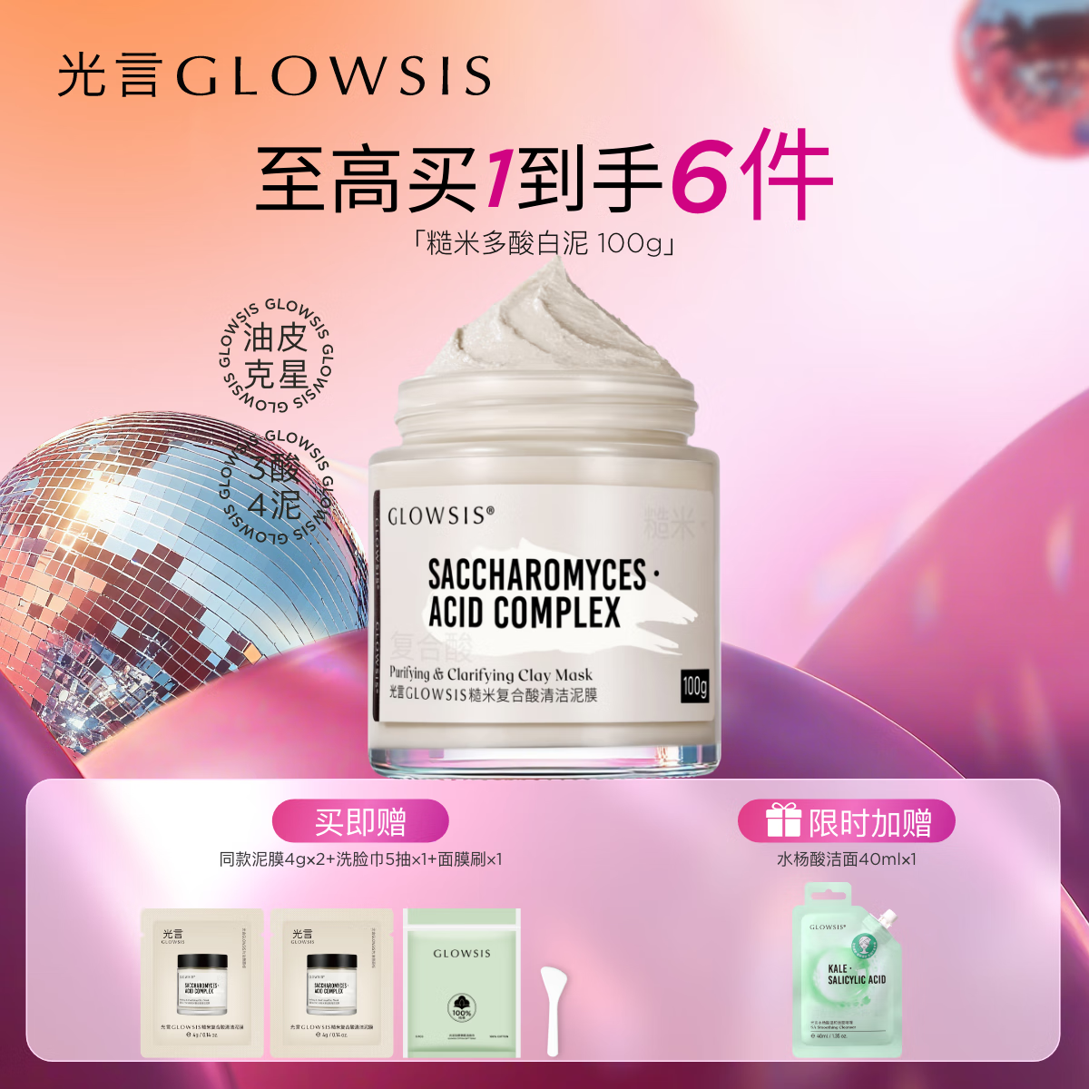 光言清洁白泥膜清洁毛孔清洁涂抹面膜软膜改善黑头控油去角质