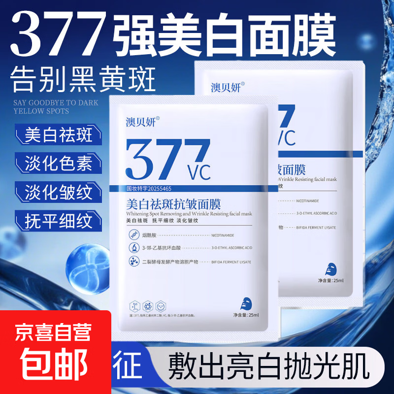美白祛斑面膜抗皱紧致抗衰老补水美白淡斑胶原蛋白377去黄气暗沉 25ml*10片【疗程装】