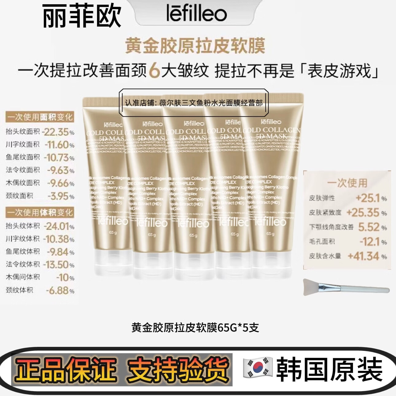 lefilleo韩国院线lefileo丽菲欧黄金胶原蛋白灌注拉皮软膜提亮保湿面膜 丽菲欧黄金胶原拉皮软膜65g*5支