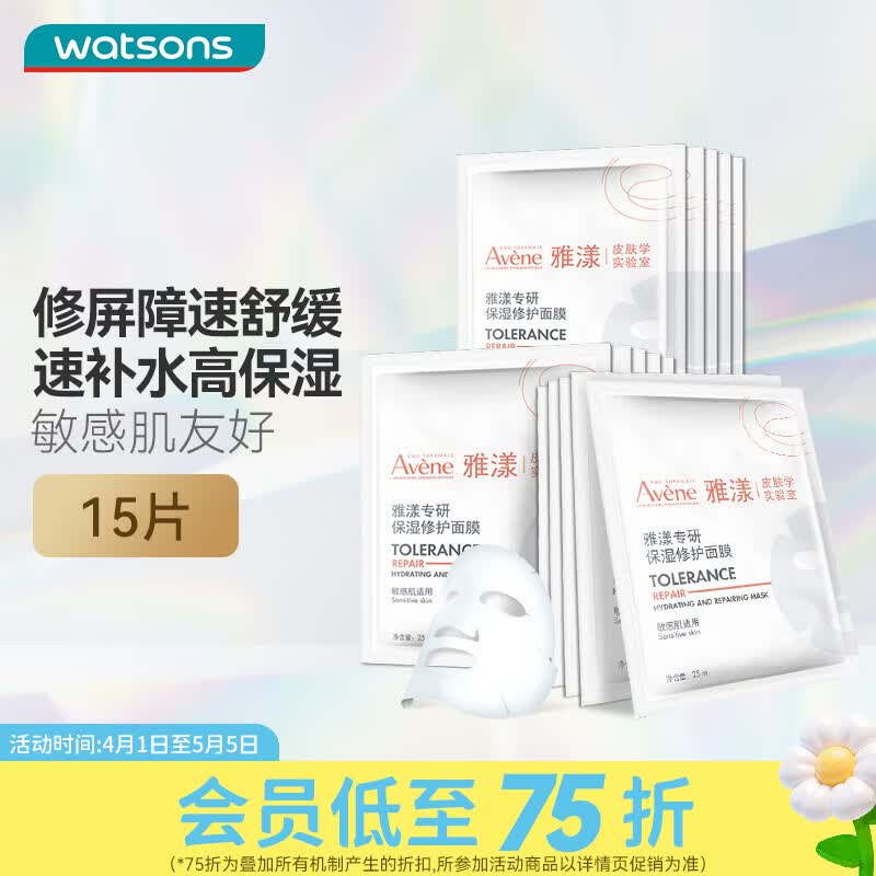 雅漾(Avene)屈臣氏雅漾专研保湿修护面膜 敏肌舒缓补水 【樊振东同款】 15片
