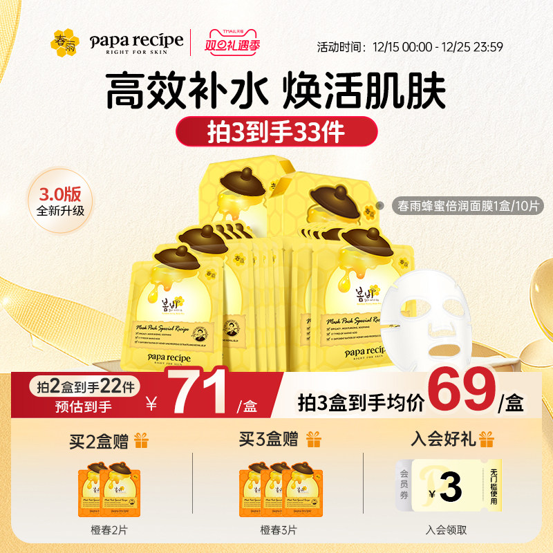 【双旦礼物】韩国春雨面膜蜂蜜补水黄10片玻尿酸熬夜保湿舒缓贴片