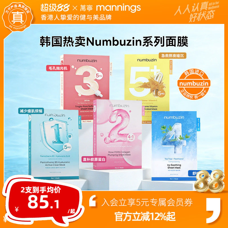 万宁韩国numbuzin数字面膜3号4号5号补水保湿收敛毛孔oliveyoung