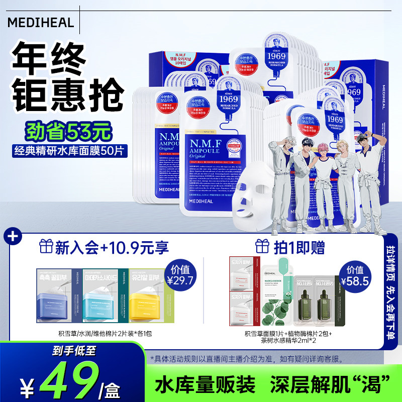 MEDIHEAL/美迪惠尔经典精研水库面膜50片温和保湿紧致官方正品