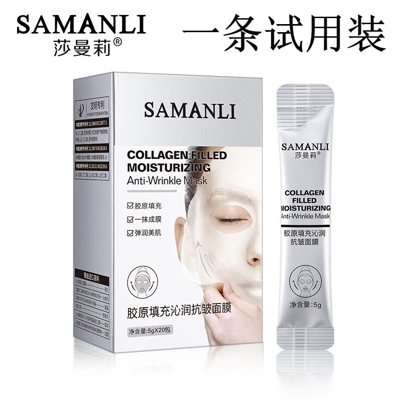 莎曼莉5盒 胶原填充沁润抗皱面膜补水保湿滋润肌肤面部涂抹式撕拉面膜 1条试用装
