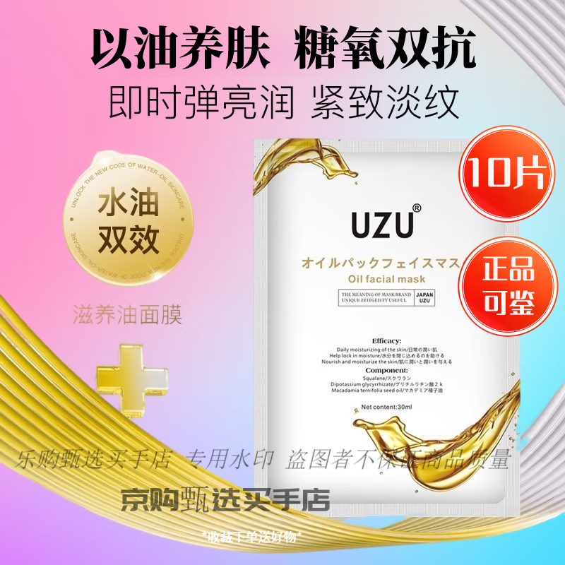 UZUPRO水光面膜逆龄保湿修护补水收缩毛孔提亮暗沉水光面膜 UZU油敷膜10片-新品(糖氧双抗)