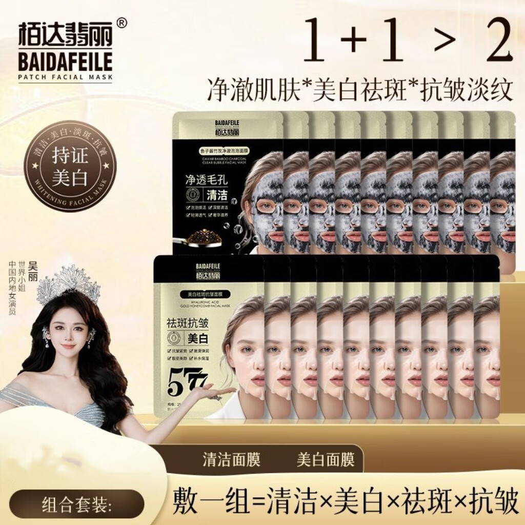 栢达翡丽鱼子酱面膜竹炭净澈泡泡+577美白抗皱精华面膜祛斑提亮肤色补水 【栢达翡丽】鱼子酱泡泡面膜5片+祛斑抗皱面膜5片 正品保障