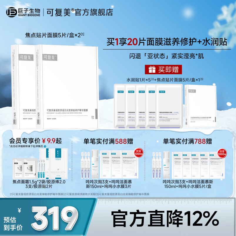 可复美焦点贴片面膜重组胶原蛋白光奕御能修护精华面膜滋养修护保湿 5片/盒*2盒