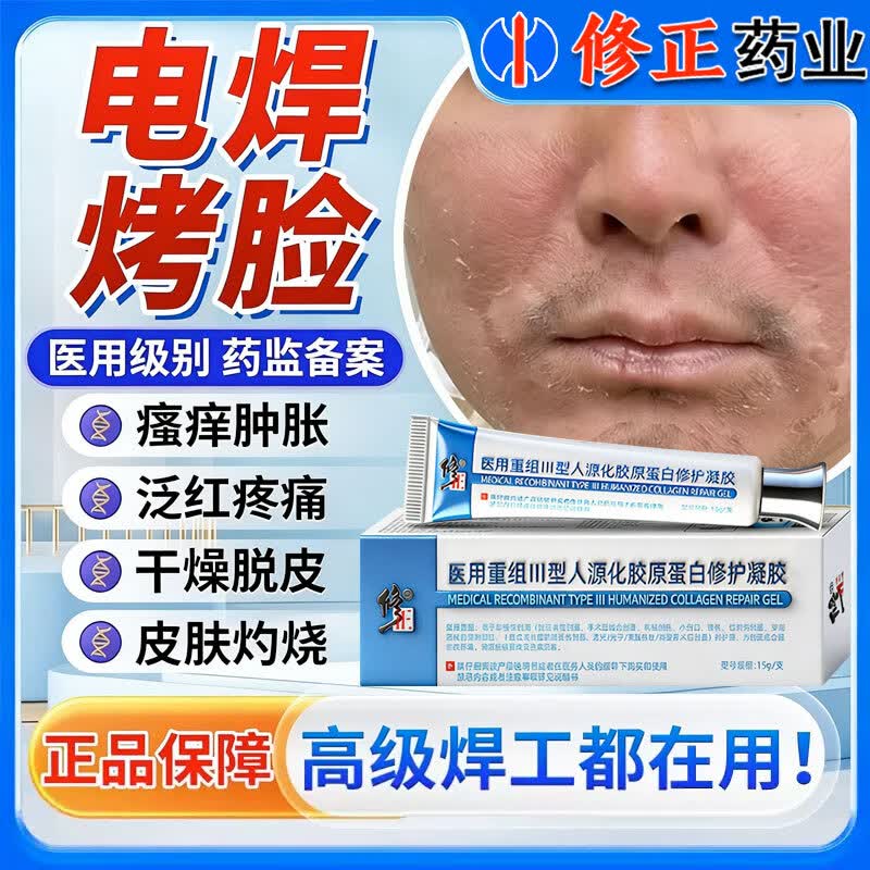 修正电焊烤脸修复霜专用凝胶灼伤发红脸烫烧伤脱皮红肿糜烂搭修复面膜 1盒.【体验装】凝胶