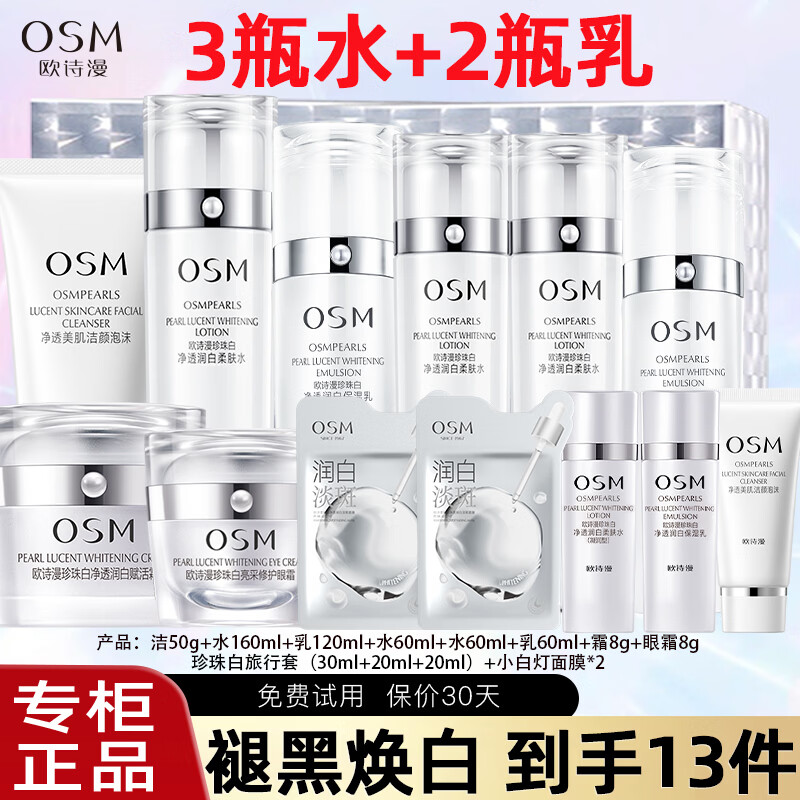 欧诗漫(OSM)护肤品套装女珍珠白美白淡斑提亮肤色水乳化妆品全套礼盒生日礼物 【多水礼盒】洗+水+水+乳+乳+面霜+面膜