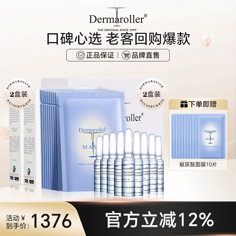Dermaroller品牌直售德国升级款玻尿酸精华安瓶急救面膜补水保湿修护囤货套装 面膜2盒+安瓶2盒