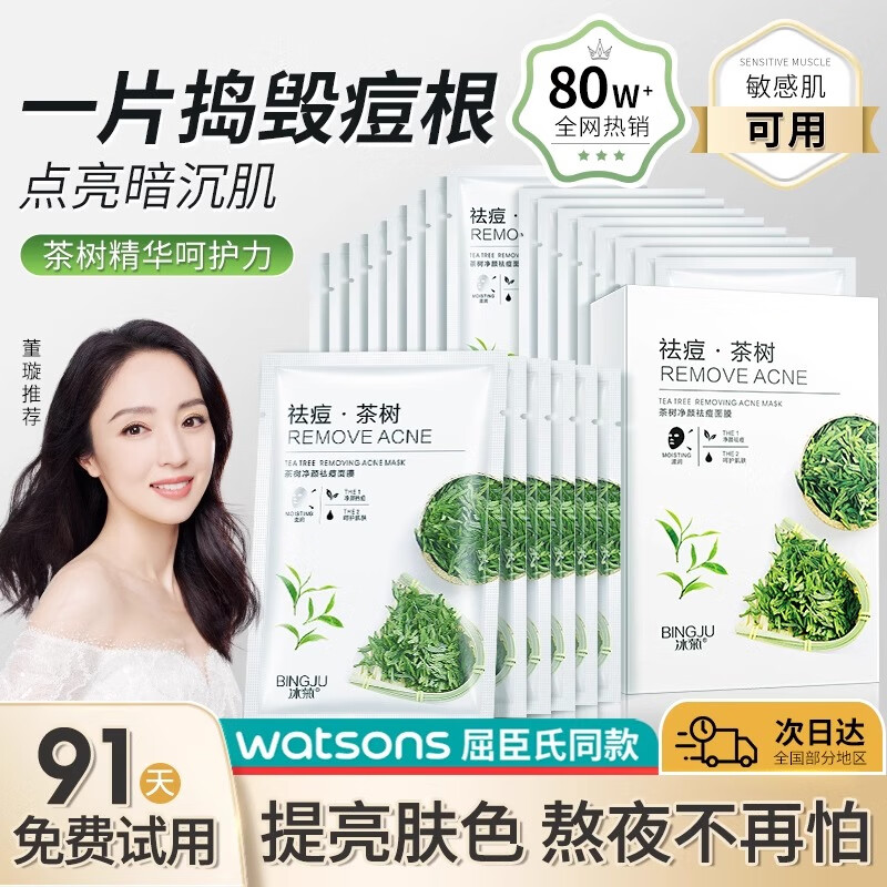 冰菊(Bing Ju)茶树面膜女舒缓祛痘淡化痘印补水保湿收缩毛孔紧致正品男控油学生 茶树8片盒装*3盒