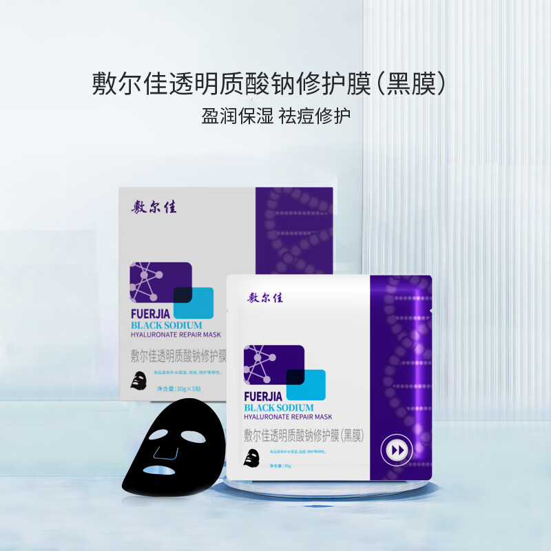 敷尔佳圣诞礼物【屈臣氏】敷尔佳透明质酸钠面膜黑膜 新旧包装随机发 修护 30g *5贴