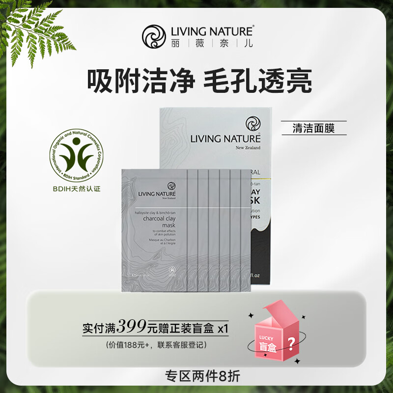 Living Nature丽薇奈儿新西兰木炭黏土清洁面膜净化毛孔细腻保湿5ml*10片/盒