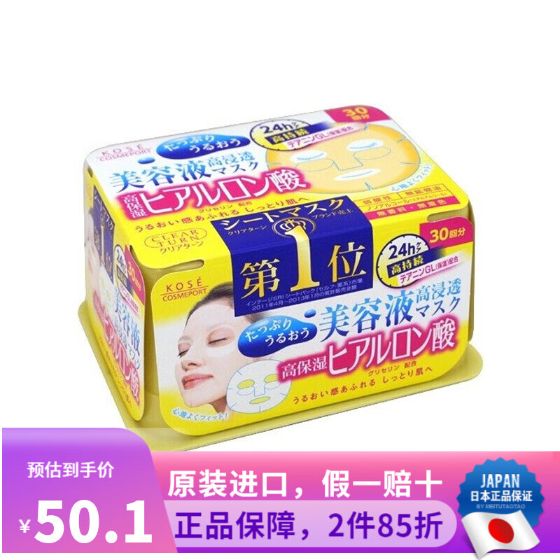 高丝(Kose) 日本原装 大容量抽取式弱酸性补水提亮紧致保湿护肤玻尿酸面膜 玻尿酸保湿型 30片装