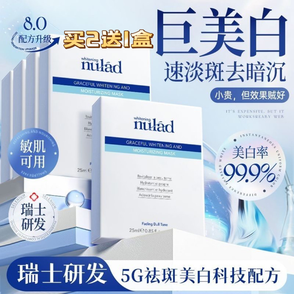 [买2送1盒]瑞士进口美/白面膜淡斑补水保湿去黄提亮肤色紧致淡纹