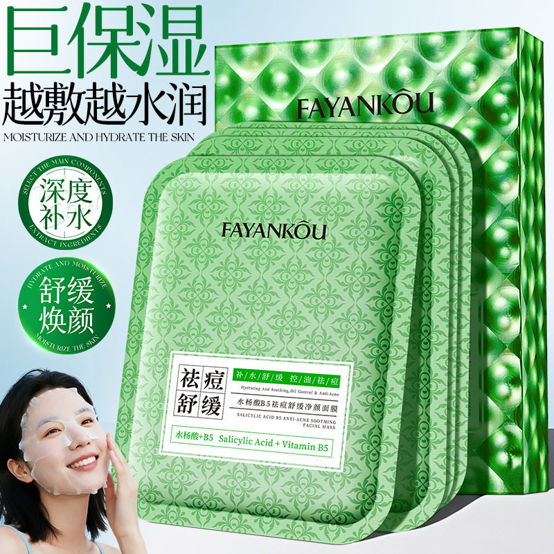 法颜蔻水杨酸b5祛痘舒缓净颜面膜补水滋润保湿祛痘盒装面膜贴