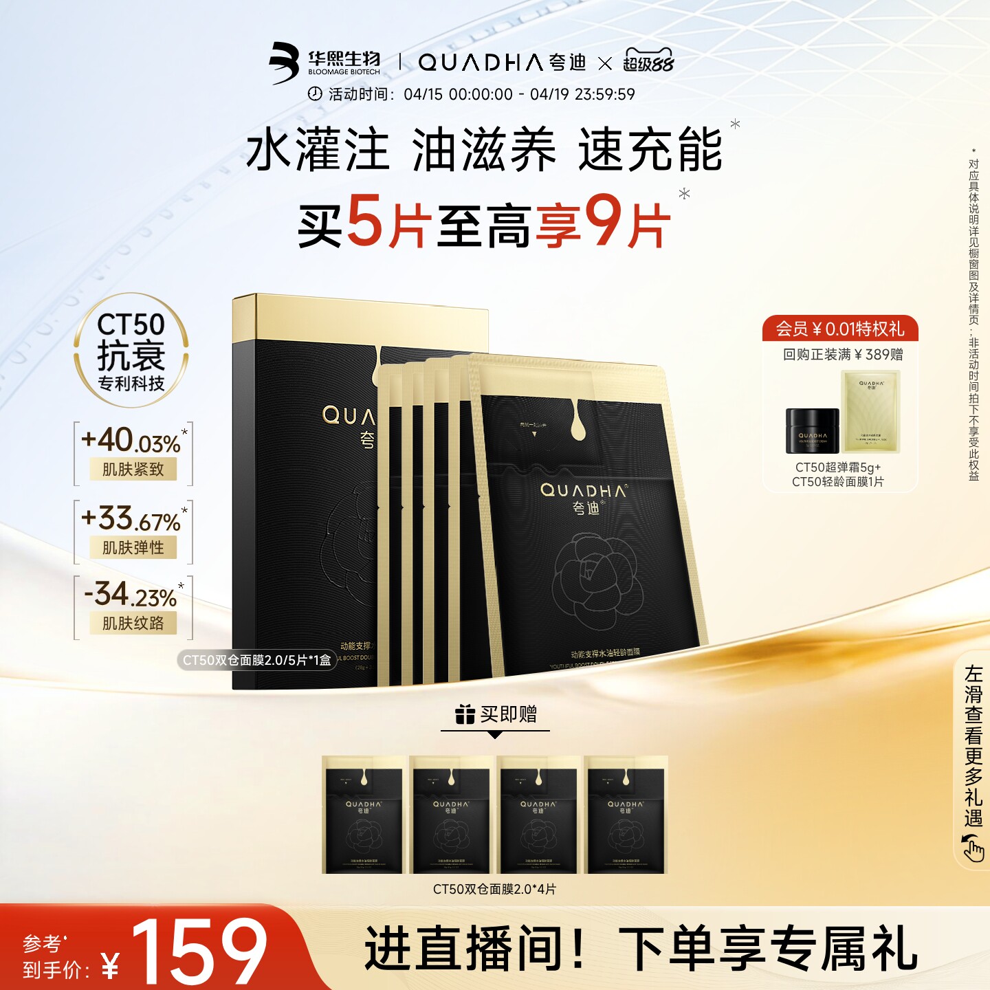 【立即抢购】华熙生物夸迪CT50双仓面膜2.0动能支撑水油面膜抗皱