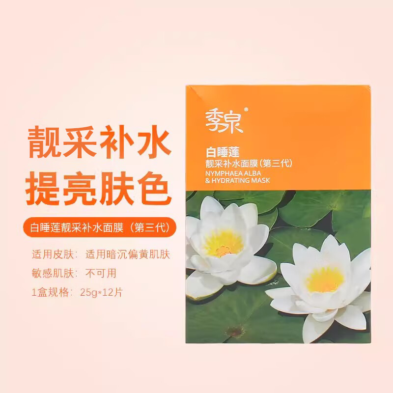 季泉面膜补水保湿舒缓控油提亮面贴膜发廊同款护肤化妆品旗舰正品 季泉白睡莲靓采补水面膜