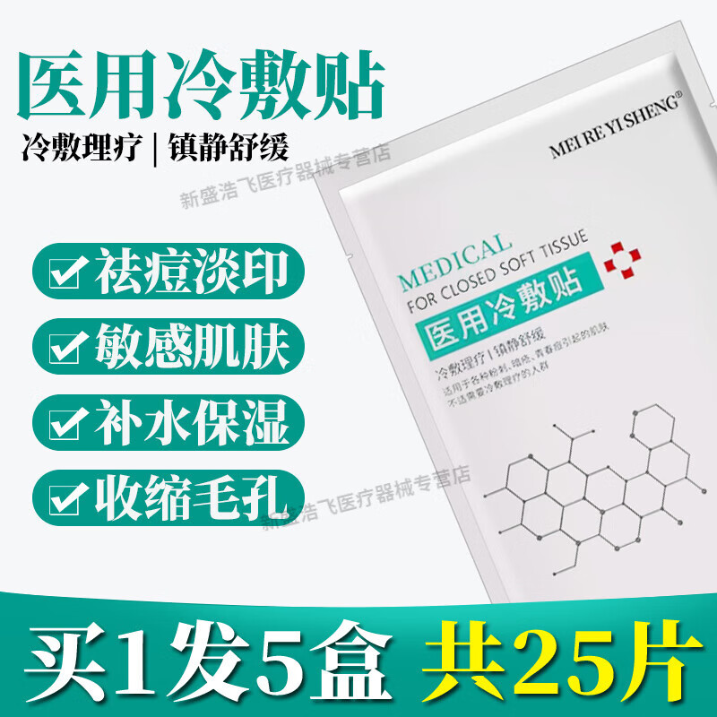 MEI RE YI SHENG医用冷敷贴 晒伤医美术后修复面膜型修复消炎祛痘补水保湿敏感肌 拍1发5共5盒25片装周期装