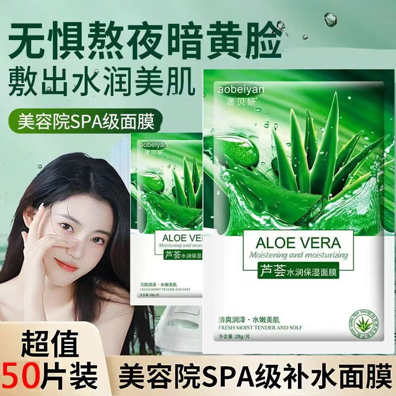 敏感肌补水面膜芦荟面膜补水保湿熬夜急救滋润提亮正品 买30送20芦荟面膜50片
