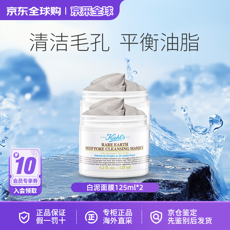 科颜氏(Kiehl's)全新二代白泥125ml 清洁面膜深度清洁毛孔控油祛痘生日礼物 白泥面膜125ml*2