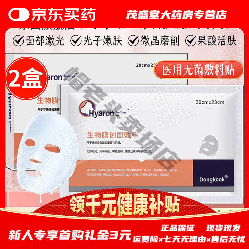 东国(DONGKOOK)医用无菌敷料贴 Hyaron械字号生物膜/颈膜 医美水光针术后冷敷贴 面膜型 2盒东国生物膜无菌敷料