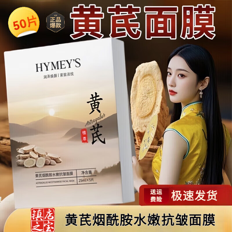 形象美【50片】六胜肽抗皱嫩颜面膜补水保湿皱纹抬头法令纹肌肤适用男女 【新】黄芪烟酰胺水嫩抗皱面膜50片