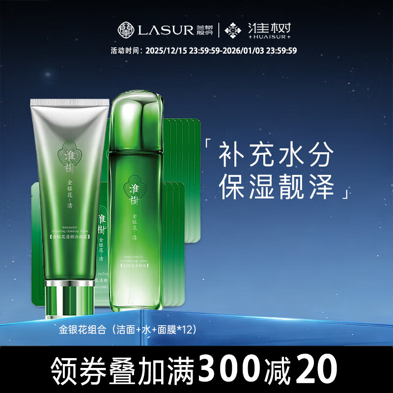 淮树金银花清颜组合洗面奶水乳精华液霜面膜化妆品护肤品套装 组合五:洁面+水+面膜*12片