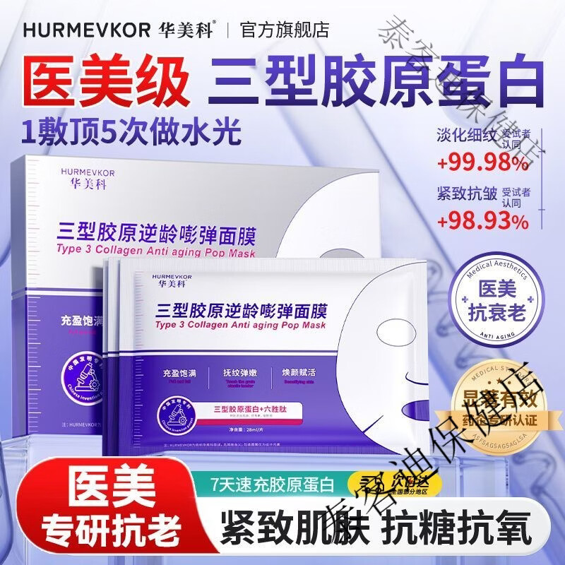 邹润安华美科 HURMEVKOR华美科胶原蛋白灌注面膜紧致抗皱补水保湿淡纹抗 [提亮肌肤黄气]胶原蛋白面膜1